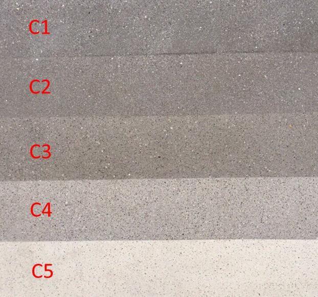 - Có 5 gam màu xám khác nhau (C1, C2, C3, C4, C5) tương tự như decoFIX để phù hợp với màu sắc có sẵn của bê tông. (tùy độ đậm nhạt khác nhau để lựa chọn).