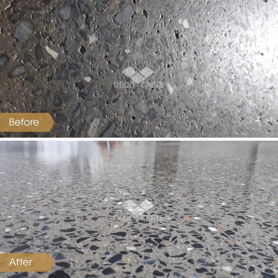 Bề mặt sàn sau khi mài với DecoPINFIX