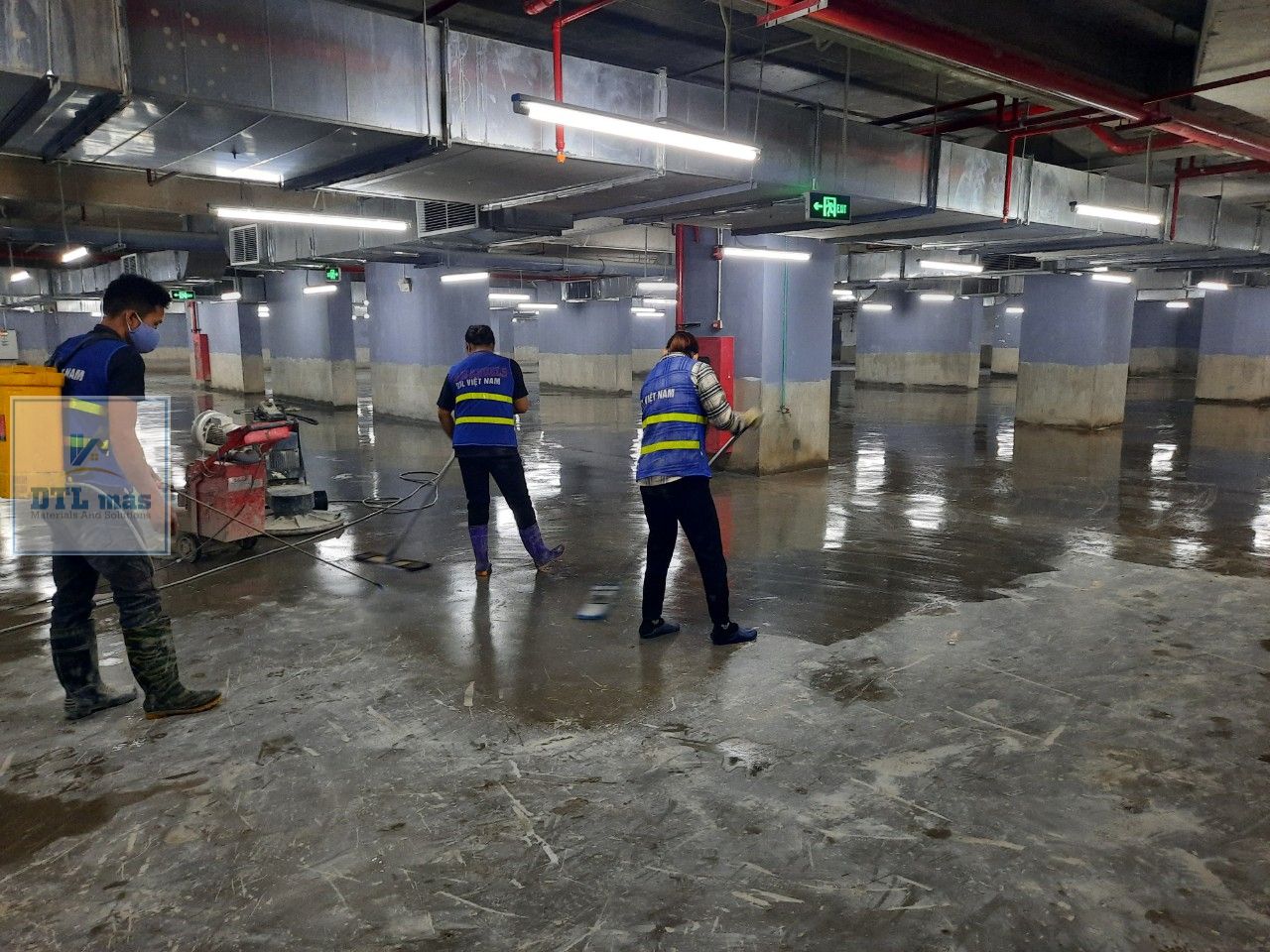 – Tốt nhất nên dùng giấy nhám để vệ sinh và tạo nhám bề mặt. Với những mặt bằng lớn nên dùng máy đánh sàn chuyên dụng với đĩa mài hay pad phù hợp.