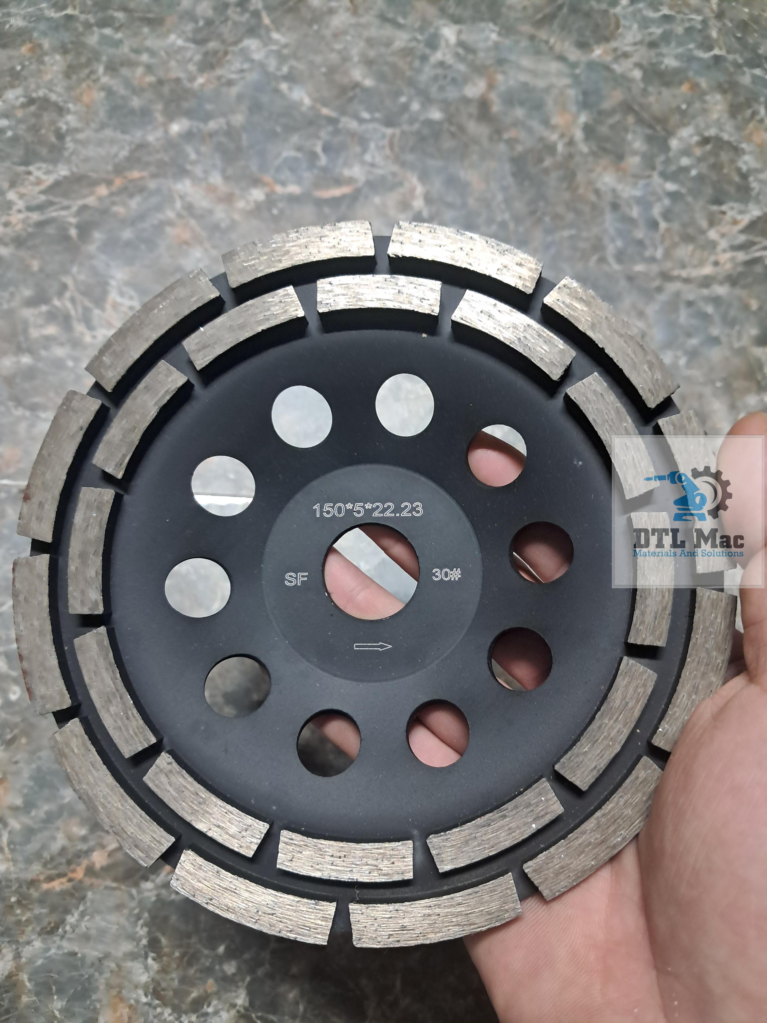 Đĩa mài bê tông mịn 150mm thiết kế kép (2 hàng lá kim cương) là giải pháp tối ưu cho giai đoạn mài tinh chỉnh và làm phẳng. Khác với dòng đĩa mài phá thô dạng xoắn, thiết kế 2 vòng lá song song giúp đĩa di chuyển ổn định, giảm rung lắc, mang lại bề mặt sau khi mài phẳng phiu, đồng đều và mịn đẹp hơn. Đây là lựa chọn hoàn hảo để xử lý bề mặt trước khi sơn Epoxy hoặc đánh bóng.