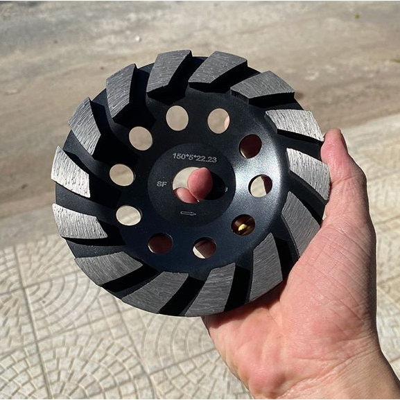 Đĩa mài bê tông 150mm (màu đen) là dòng đá mài kim cương chất lượng cao, được thiết kế chuyên dụng cho các công đoạn mài thô, mài phá. Với thiết kế các lá mài dạng rãnh xoắn (Turbo) giúp tăng tốc độ bào mòn, sản phẩm là giải pháp tối ưu để xử lý bề mặt sàn bê tông, sàn đá và loại bỏ các lớp sơn Epoxy cũ một cách nhanh chóng.