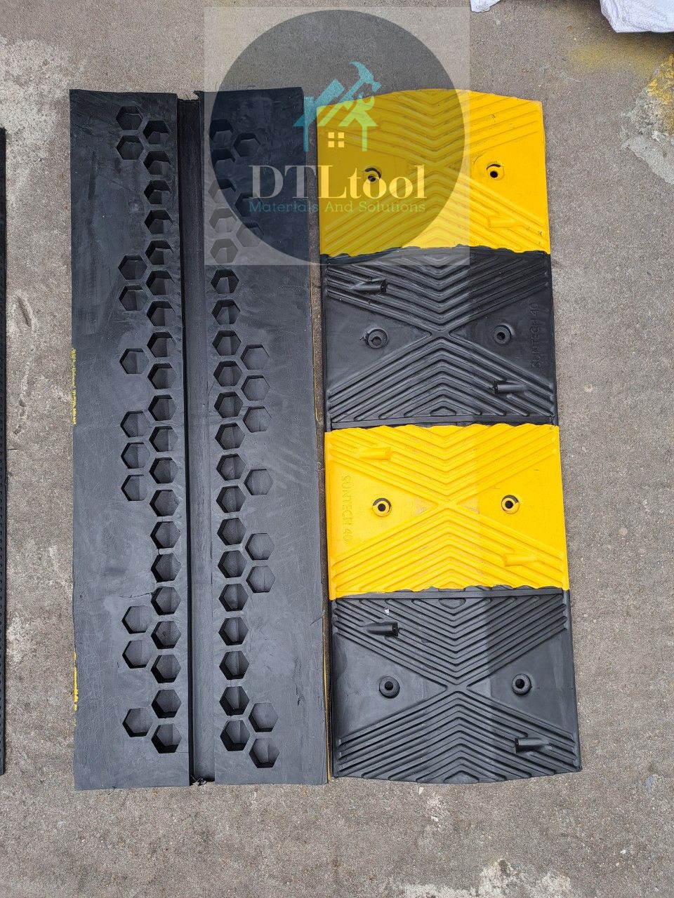 - Tất cả dòng sản phẩm thiết bị giao thông gờ giảm tốc độ trên đường, vạch giảm tốc độ đều được chế tạo từ nhựa tái chế bền và được phủ một lớp sơn màu vàng.
