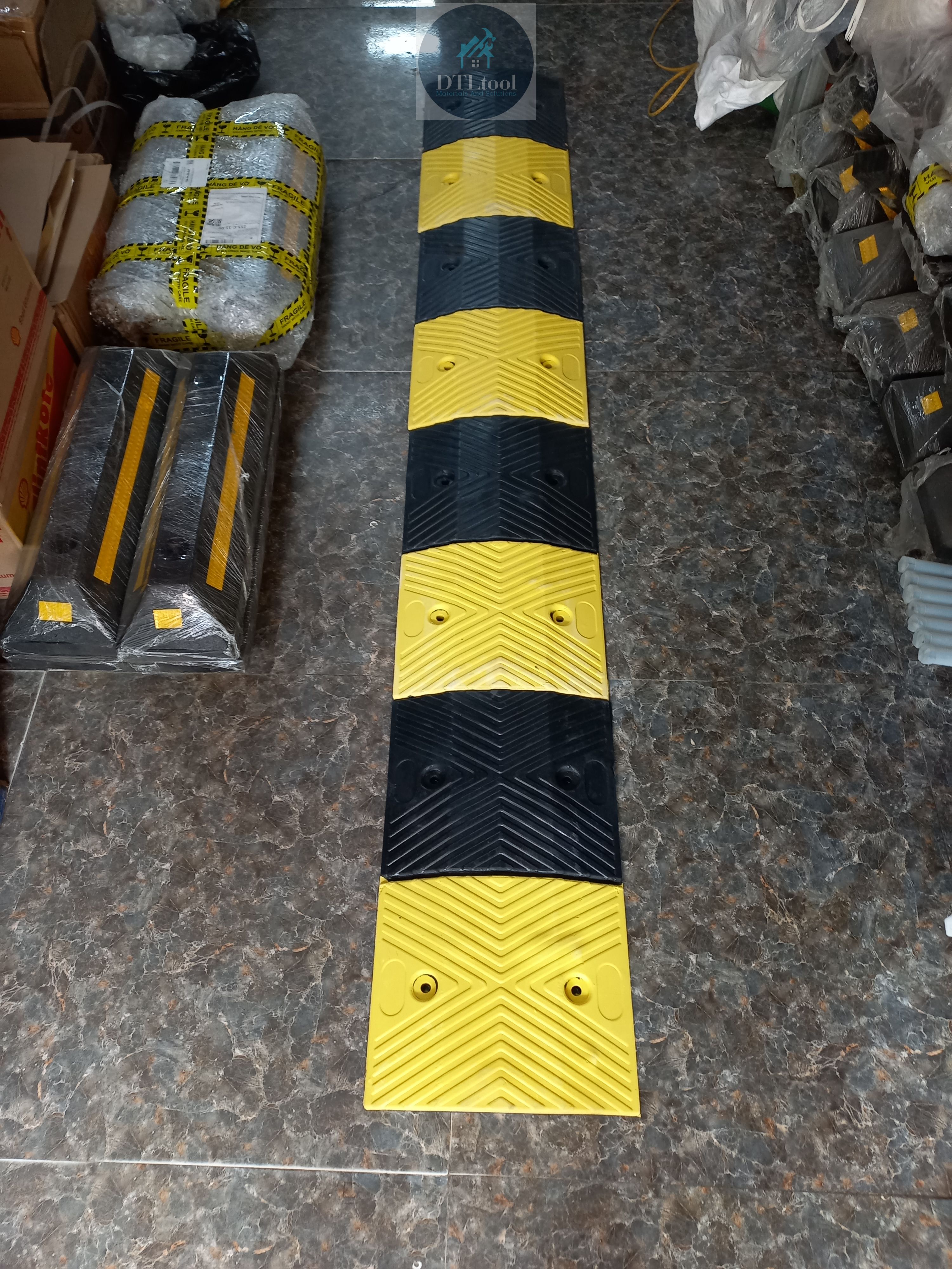 - Tất cả dòng sản phẩm thiết bị giao thông gờ giảm tốc độ trên đường, vạch giảm tốc độ đều được chế tạo từ nhựa tái chế bền và được phủ một lớp sơn màu vàng.