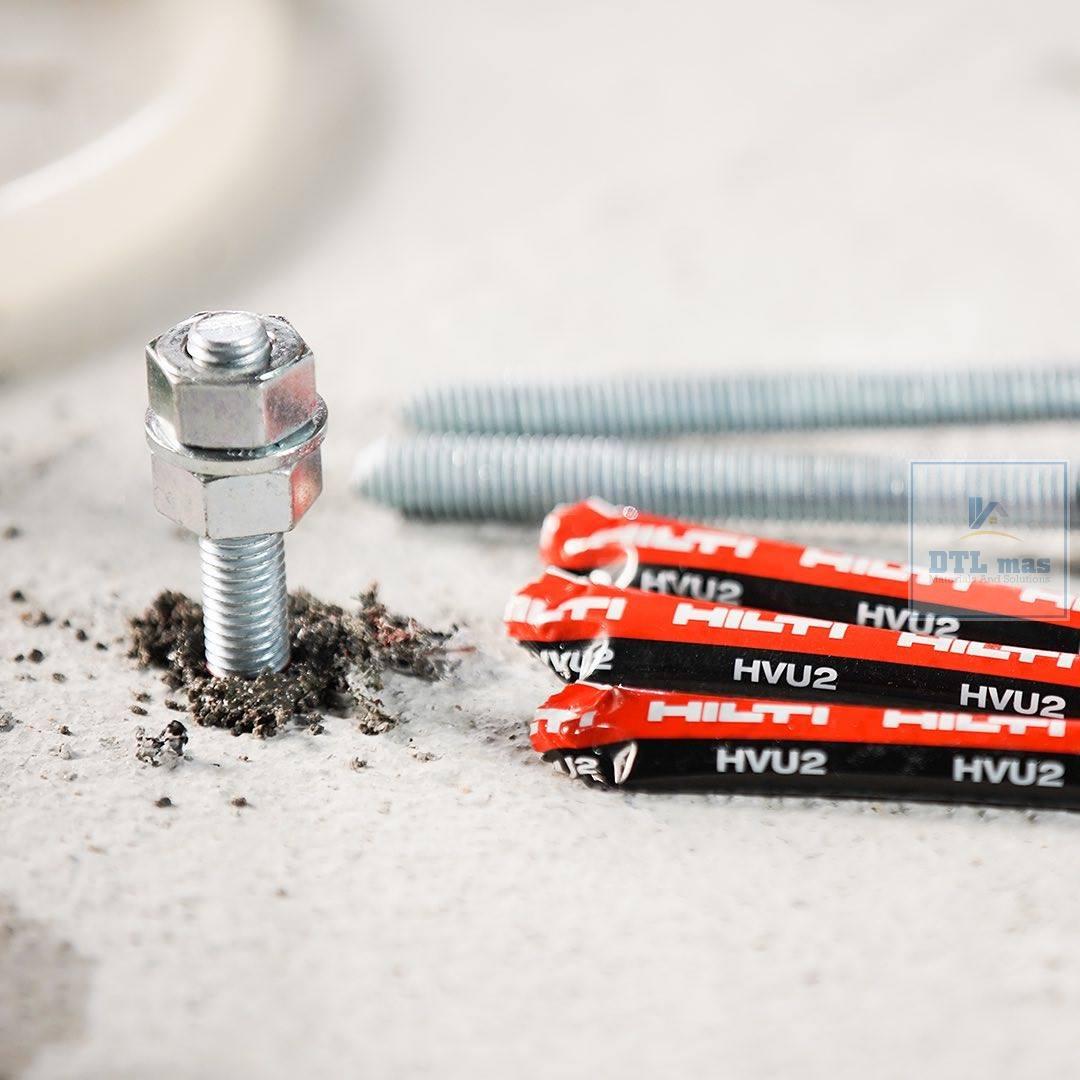 Hóa chất ống nhộng Hilti HVU2 M16x125 là phần hóa chất đông kết nhanh để gắn thanh ren M16x190 vào bê tông tạo thành bulong hóa chất M16x190.