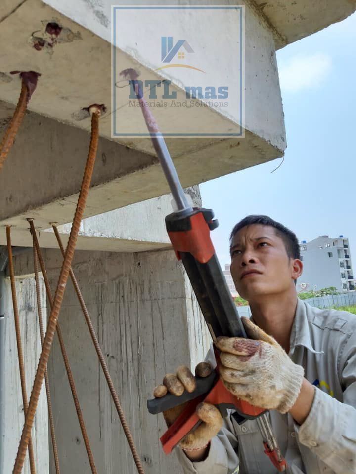 - Keo cấy thép Hilti HIT RE 100 được thi công bằng dụng cụ chuyên nghiệp, như súng bơm keo Hilti HDM 500