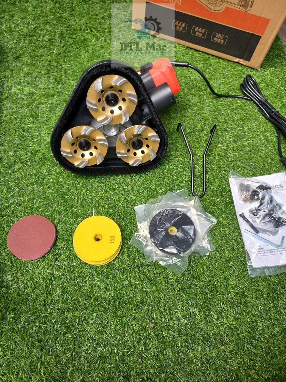 - Thiết kế 3 đĩa mài: Ba đĩa mài đường kính 100mm cho phép mài trên diện tích rộng hơn (22cm), giúp tăng hiệu quả công việc.