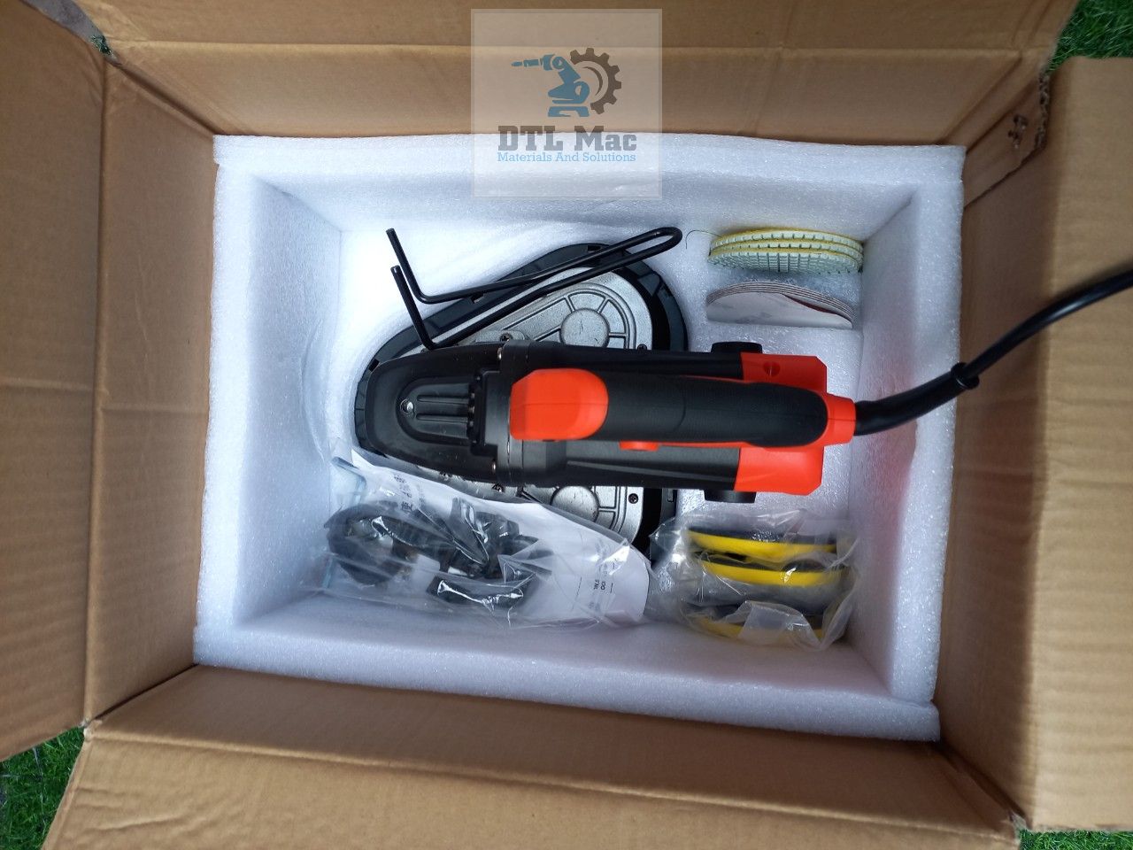 - Phụ kiện đi kèm: Khi mua máy, bạn sẽ nhận được hộp đựng, đĩa mài, chụp bụi, dụng cụ tháo lắp và chổi than, sách hướng dẫn, đảm bảo bạn có mọi thứ cần thiết để bắt đầu công việc.