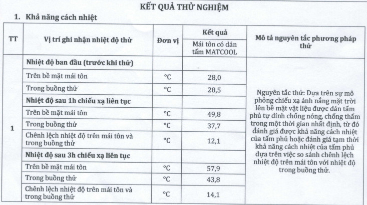Thực tế qua các công trình đã thi công. Màng chống thấm mái tôn MATCOOL đã đạt được hiệu quả như sau: