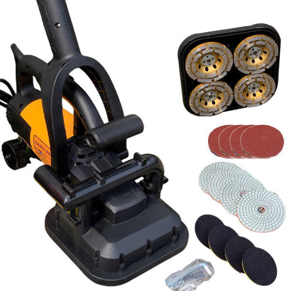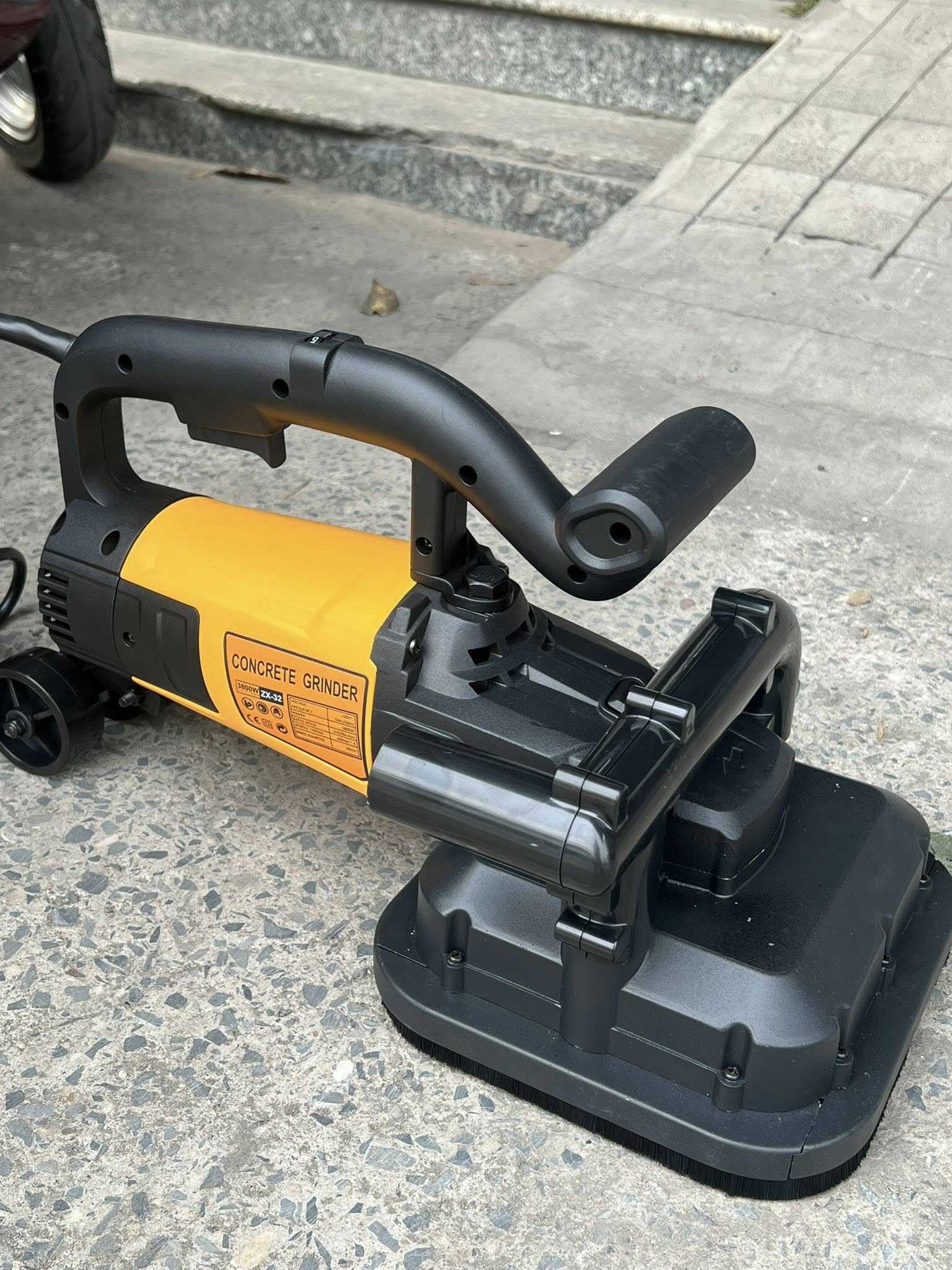 - Công suất 3800W mạnh mẽ bậc nhất: Với 3800W, máy không chỉ dừng lại ở việc mài mịn mà còn có khả năng mài phá lớp sơn epoxy cũ, mài hạ cốt nền hoặc loại bỏ các tạp chất bám dính trên sàn một cách dễ dàng.