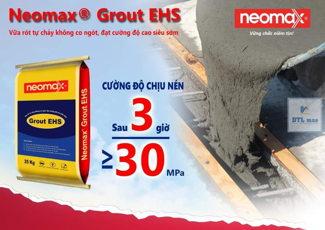 Neomax® Grout EHS là loại vữa rót trộn sẵn gốc xi măng, có khả năng tự chảy, tự san bằng, không co ngót, đạt cường độ cao siêu sớm, khả năng chống thấm và chống ăn mòn cao, thời gian cho phép thi công kéo dài.