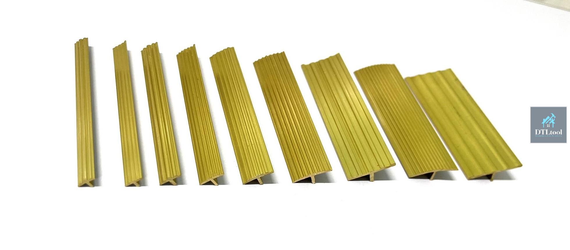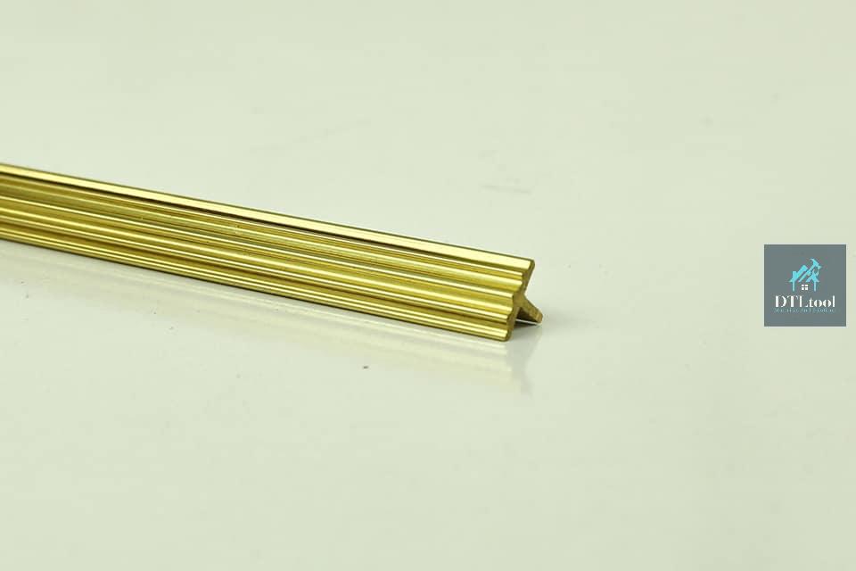 Vẻ Đẹp Độc Đáo & Sang Trọng: Nẹp đồng thau chữ T mang trong mình sắc vàng óng ả tự nhiên của hợp kim đồng, tạo nên một vẻ đẹp vừa cổ điển hoài niệm vừa hiện đại, đẳng cấp. Ánh kim lấp lánh của đồng thau sẽ là điểm nhấn tinh tế, thu hút mọi ánh nhìn và nâng tầm giá trị thẩm mỹ cho bất kỳ không gian nào.