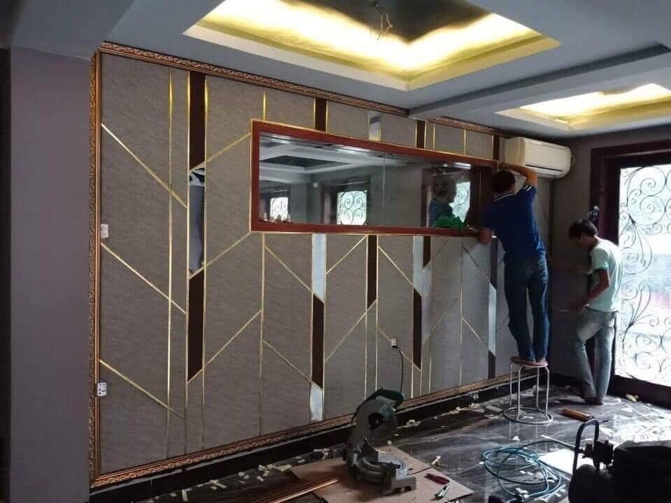 - Gắn nẹp tạo điểm nhấn cho vách treo TV