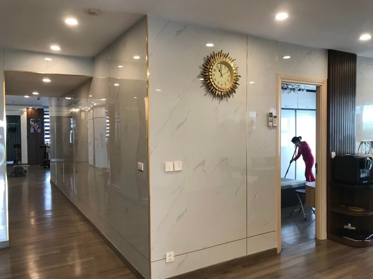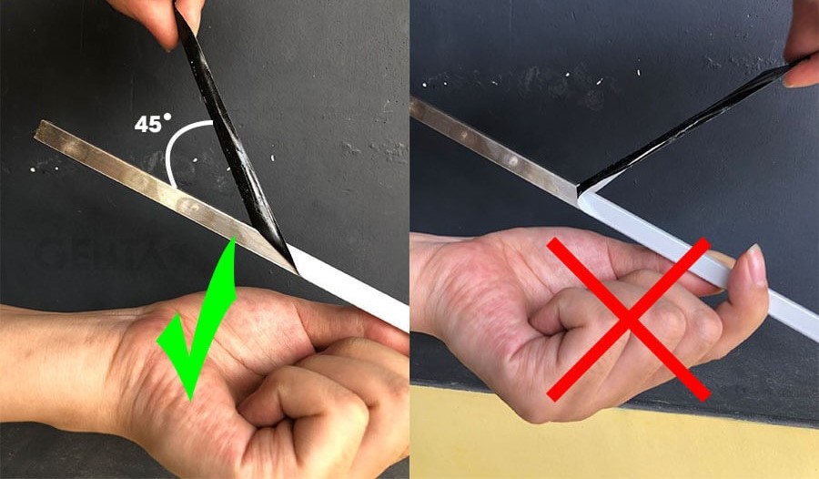 Bước 4: Sau khi gắn nẹp xong, bạn dùng khăn ẩm lau sạch khu vực vừa thi công.