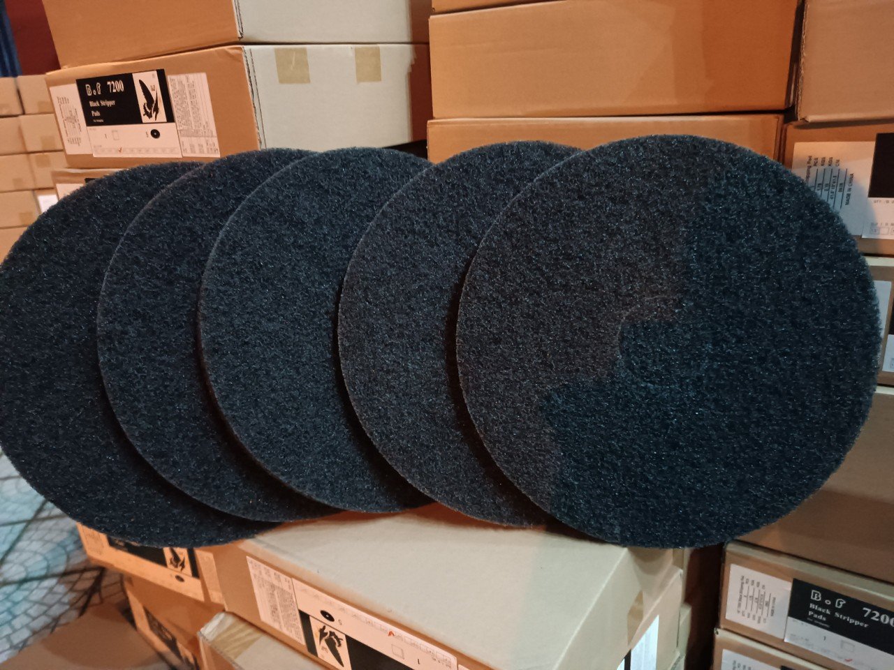 – Pad chà sàn đen: Loại pad này có màu đen và mật độ sợi của pad dày. Đây là loại pad cứng cáp nhất trong hầu hết các loại miếng chà sàn. Loại này thường được sử dụng để chà sàn ướt và chà phá cho các mặt sàn bị bẩn nhiều hoặc khó khăn trong quá trình làm sạch. Các bề mặt sàn sần sùi, bị bám xi măng hay những loại mặt sàn nhà đã phủ sơn bóng, chà các góc tường cũng thường xuyên vệ sinh bằng loại phụ kiện này. Có thể cho rằng pad đánh bóng sàn màu đen rất phù hợp để sử dụng trong những mặt sàn nhấp nhô và khó vệ sinh nhất.
