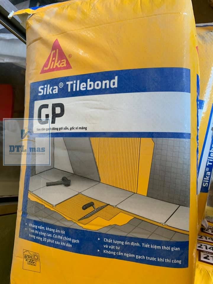 SikaTilebond GP là dạng bột màu xám, một thành phần gốc xi măng, cát, phụ gia chọn lọc đóng gói sẵn chỉ việc trộn thêm nước để làm keo vữa dán gạch nội thất ốp tường, lát nền sàn