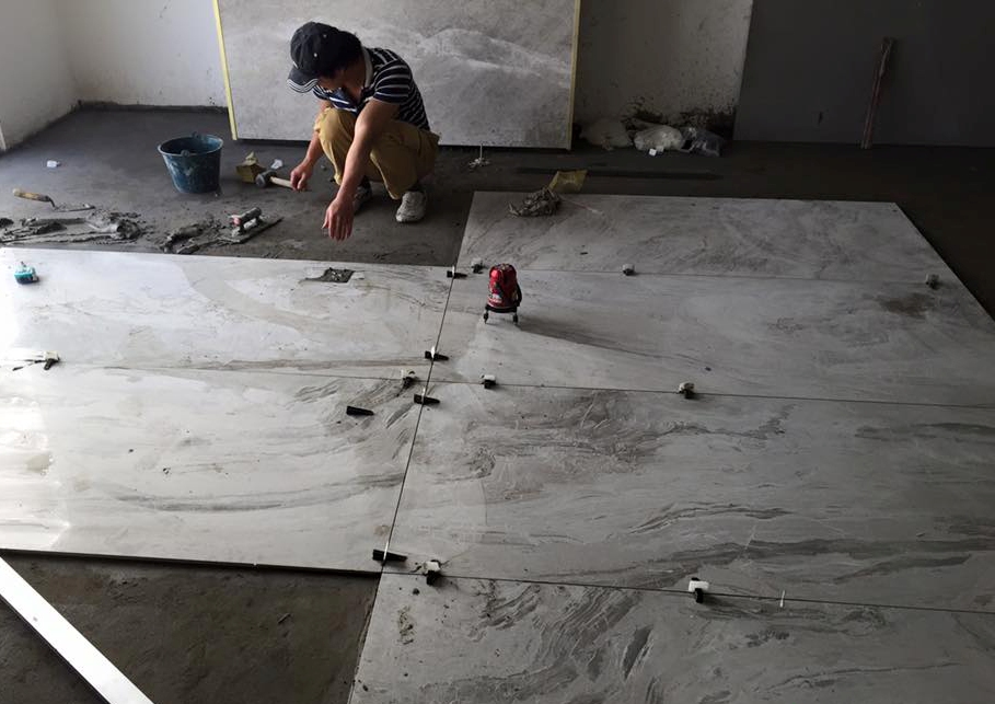 Đổ một lượng keo dán gạch ra bề mặt nền, dùng bay răng cưa trải đều trên bề mặt. Đối với sàn trải đều trên bề mặt ,đối với tường trát keo theo phương ngang