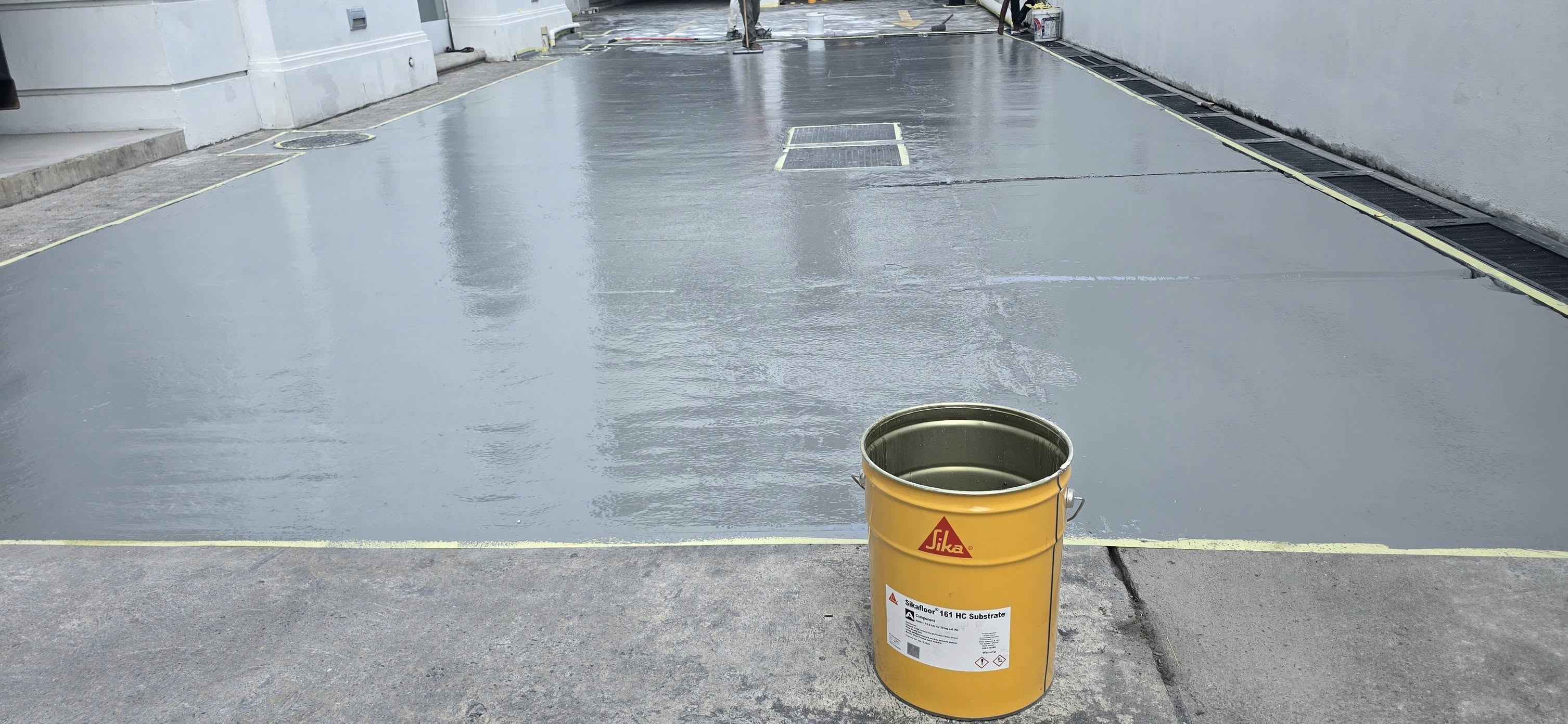 - Sử dụng Sikafloor Epocem nếu độ ẩm lớn hơn 4%. Để làm phẳng bề mặt, sử dụng vữa Sikafloor 161 tự san phẳng.