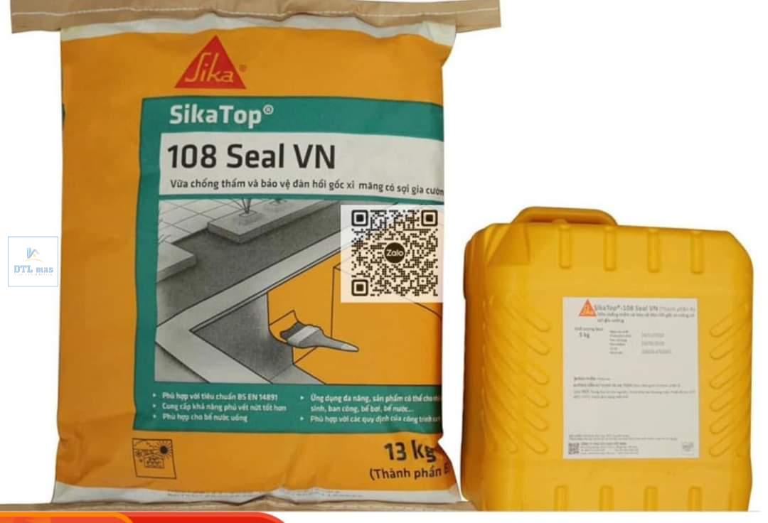 SikaTop 108 Seal VN là một loại vữa chống thấm và bảo vệ đàn hồi, có thành phần gốc xi-măng polymer cải tiến và được gia cường bằng sợi gia cường, giúp vữa có khả năng phủ vết nứt tốt. Sản phẩm này có thể thi công lên nhiều loại bề mặt khác nhau.
