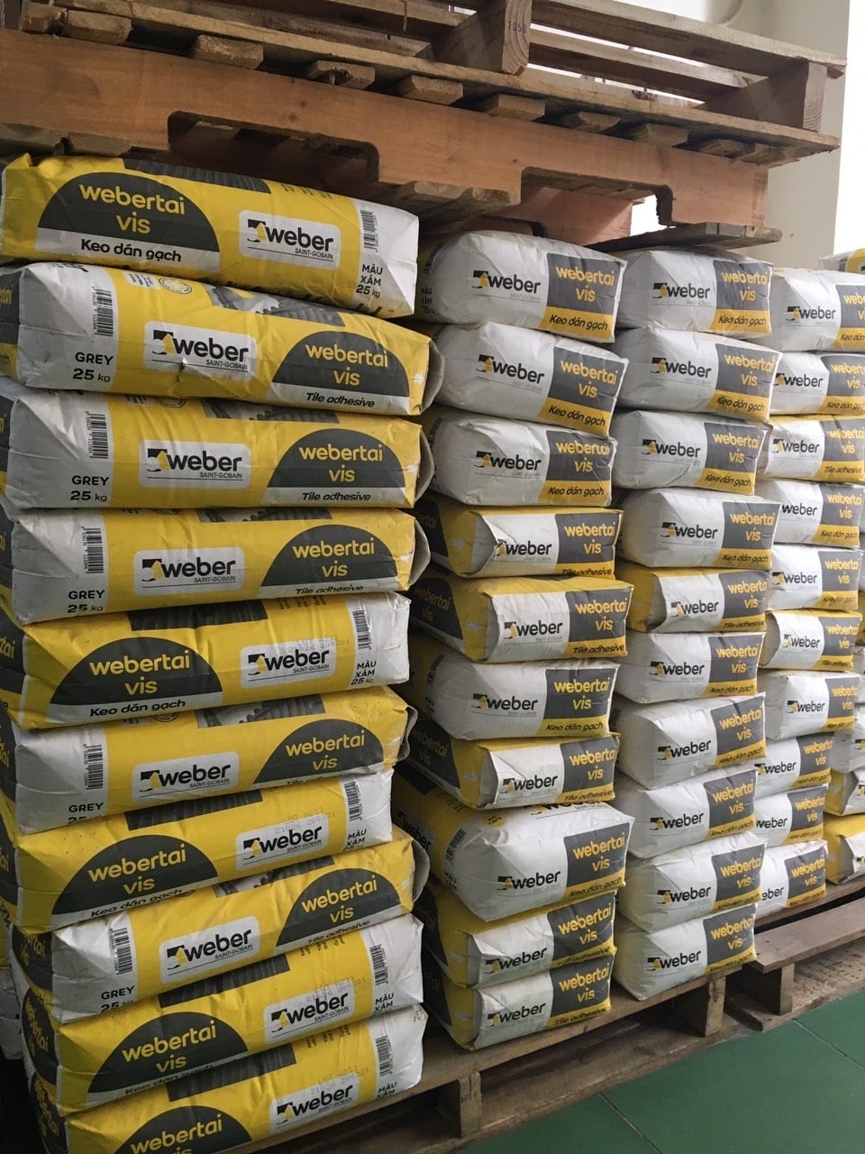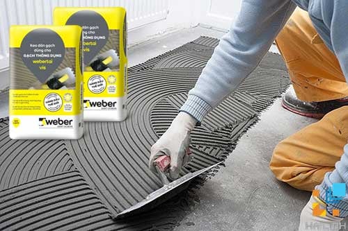 Keo dán gạch Weber. Tai Vis 25Kg thông dụng thích hợp sử dụng cho các gạch xốp, gạch ceramic trên bề mặt sàn và tường bằng xi măng, có khả năng kết dính tốt phù hợp dán gạch có kích thước trung bình